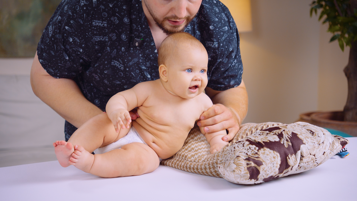 6-9 месяцев — это период активного освоения ключевых двигательных навыков: ползания, сидения, а некоторые дети уже пытаются вставать у опоры. Курс научит техникам массажа, направленным на: